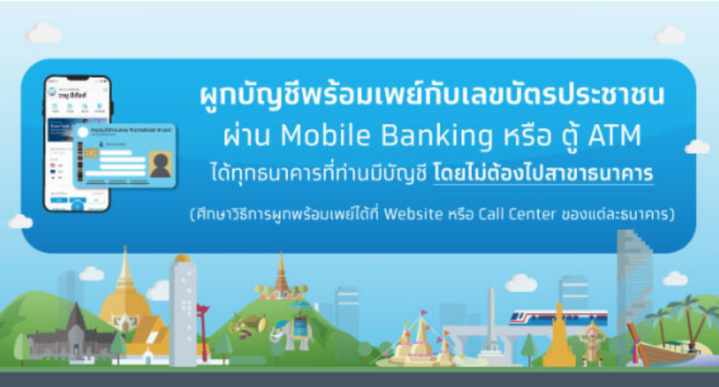 อย่างไรก็ตาม สามารถผูกบัญชีพร้อมเพย์กับเลขประชาชนผ่าน Mobile Banking หรือ ตู้ ATM ได้ทุกธนาคารที่ท่านมีบัญชี โดยไม่ต้องเดินทางไปสาขาธนาคาร