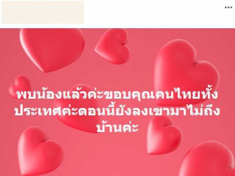 พบน้องแล้วค่ะ ขอบคุณคนไทยทั้งประเทศค่ะ ตอนนี้ยังลงเขามาไม่ถึงบ้านค่ะ