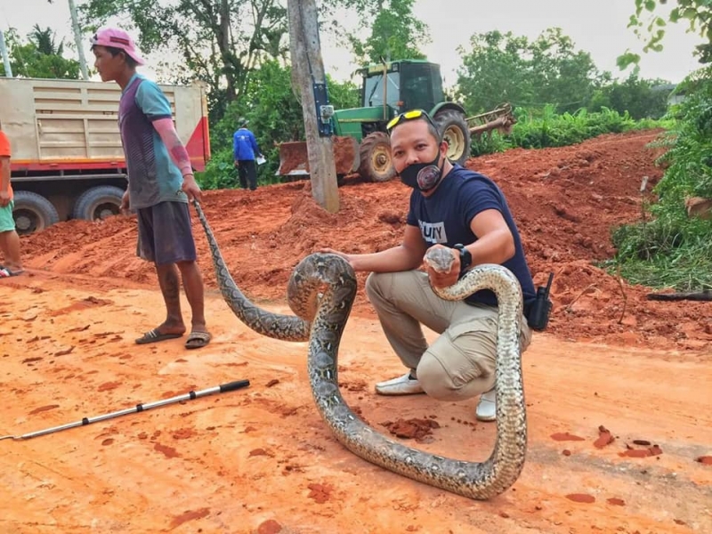 ส.อ.ณัฐวุฒิ คณิตธนันต์ ตำแหน่ง นายช่างโยธา สำนักงานทางหลวงชนบทที่11(สุราษฎร์ธานี) และเป็นนักวิทยุสมัครเล่น หรือฉายา หมองูเมืองสุราษฎร์ รับแจ้งขอความช่วยเหลือจากชาวบ้านทางเฟชบุ๊กส่วนตัวช่วยจับงูขนาดใหญ่ บริเวณหมู่ที่ 2 ต.ขุนทะเล อ.เมือง จ.สุราษฎร์ธานี รีบตรวจสอบให้การช่วยเหลือพร้อมอุปกรณ์จับงู