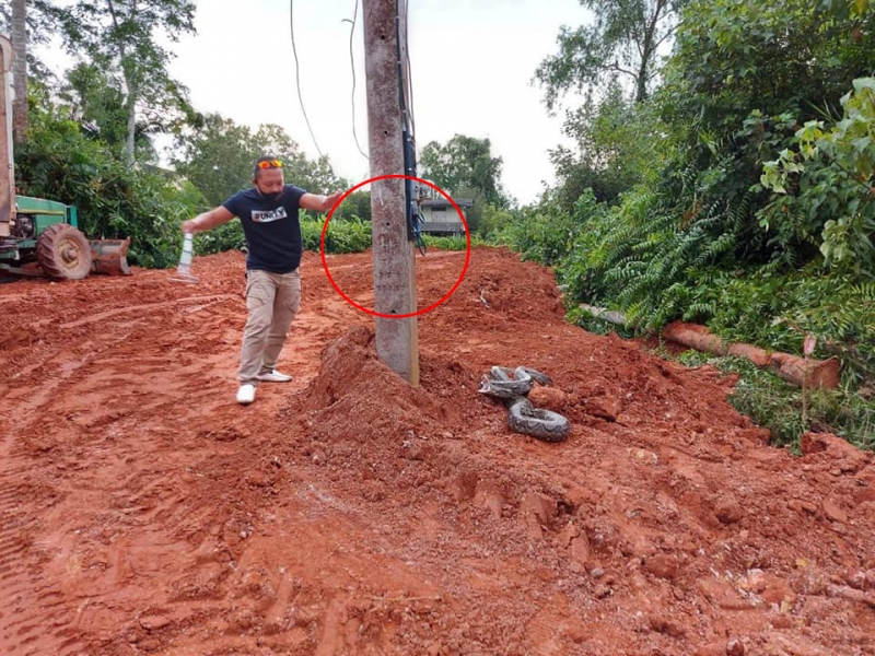 เจ้าของที่ปรับหน้าดิน งูเหลือมยักษ์โผล่ คนแห่ส่องเลขเสาไฟ