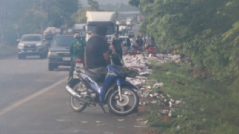 นอกจากนี้ยังมีรายงานว่า หลังจากที่รถบรรทุกเทรลเลอร์ได้เสียหลักและเบียร์กระป๋องหล่นกระจาดเกลื่อนถนน ได้มีบรรดา คนไทยไม่ทิ้งกัน จำนวนมากทั้งชาวบ้านในละแวกใกล้ที่เกิดเหตุ และบรรดาผู้ที่ขับรถผ่านมา ได้จอดรถข้างทาง ลงมาแห่ขนเบียร์ขึ้นรถกันอย่างสนุกสนาน ไม่สนใจแม้เจ้าหน้าที่จะพยายามห้ามปราบก็ตาม