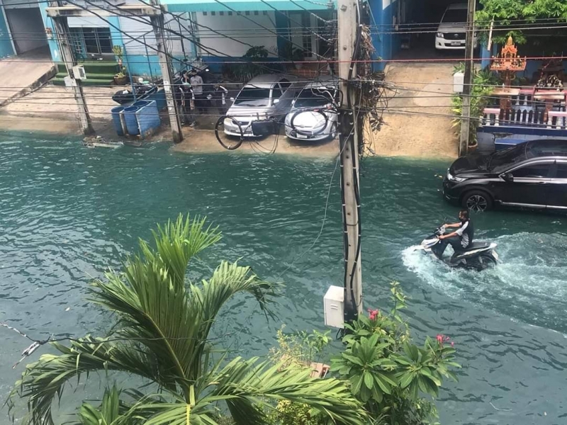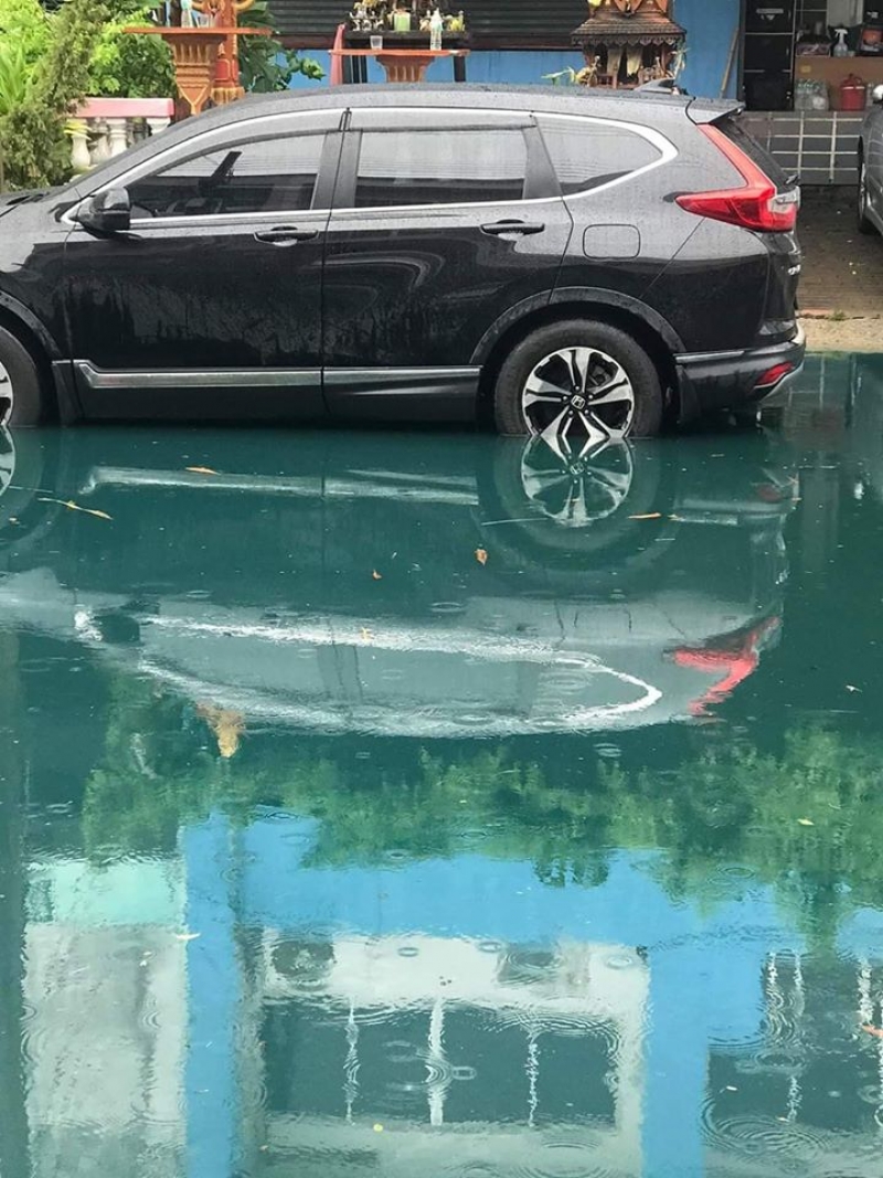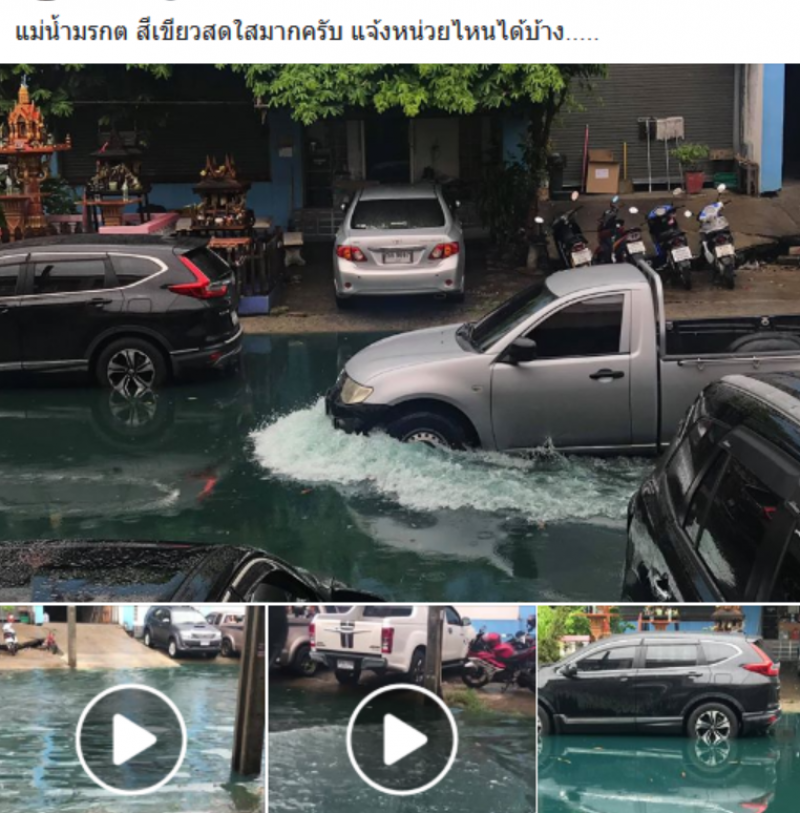 เรียกได้ว่าเป็นอีกหนึ่งเหตุการณ์ ที่สร้างความฮือฮาอย่างมากในโลกออนไลน์ หลังจากที่มีการเผยแพร่ภาพน้ำท่วมขังเป็นสีคล้ายมรกต โดยทางเพจ แจ้งเหตุปราการ ระบุว่า น้ำเขียวมรกต แถวบางบ่อ เส้นถนนปานวิถีตอนนี้ ถึงฝนตกไม่หนักก็น้ำท่วมเป็นแบบนี้ตลอด สมาชิกเพจแจ้งว่าโรงงานแถวนี้เขาทิ้งน้ำมันลงท่อระบายน้ำกันครับ เลยส่งผลให้มีการอุดตันและท่วมขังเช่นนี้ ขณะที่ผู้ใช้เฟซบุ๊กรายหนึ่ง ได้โพสต์คลิปพร้อมระบุว่า แม่น้ำมรกต สีเขียวสดใสมากครับ แจ้งหน่วยไหนได้บ้าง