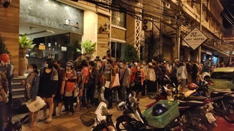 ชาวบ้านนับพันเหล่านี้ ออกมาต่อคิวกัน ตั้งแต่ช่วง 01.00 น. เพื่อจะได้รับของแจกเป็นคิวแรกๆ โดยชาวบ้านทุกคนไม่สนแม้ว่าจะมีคำสั่งเคอร์ฟิวตามที่รัฐบาลได้ประกาศ เพราะชาวบ้านทุกคนกลัวตนเองและครอบตนัว อดมากว่าถูกจับเคอร์ฟิว