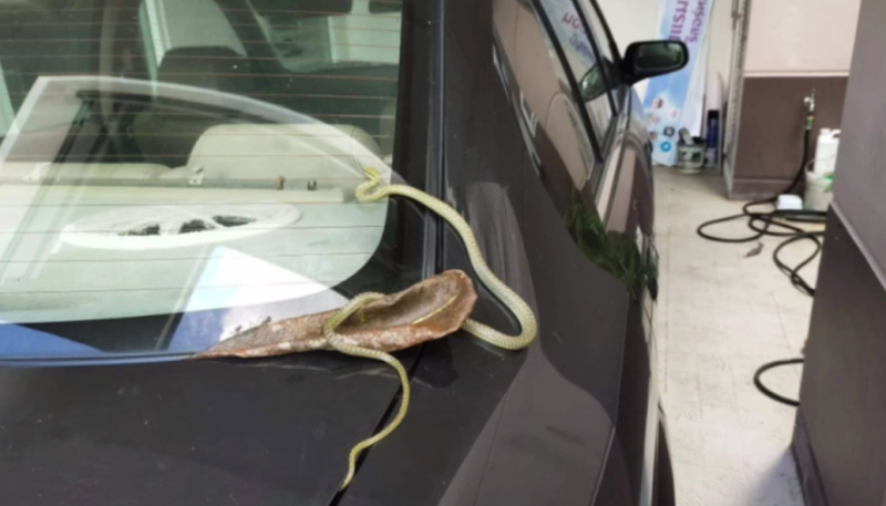ดีเจหนุ่ม กวาดขยะเจองูเขียว เลื้อยบนหลังคารถ
