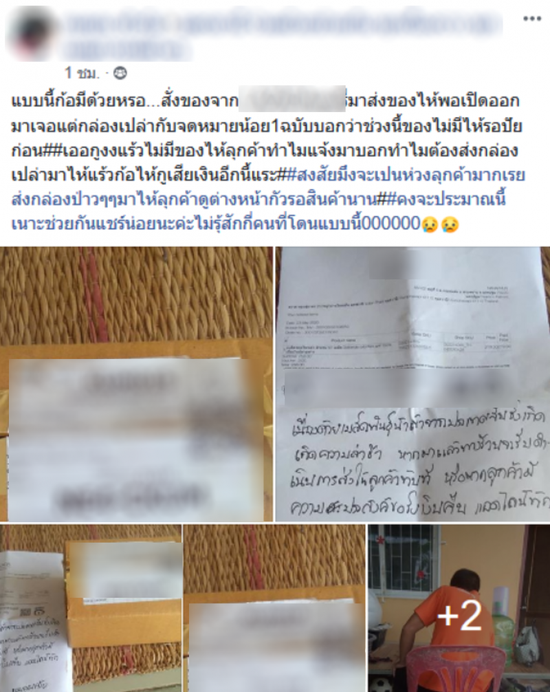 เรียกได้ว่าเป็นอีกหนึ่งเรื่องราว ที่เรียกเสียงวิพากษ์วิจารณ์อย่างมาก จากกรณีที่สาวคนหนึ่ง ได้โพสต์เรื่องราวลงในกลุ่ม หลังจากที่ตนได้สั่งของจากเว็บออนไลน์ แต่ทว่าเมื่อมีพัสดุมาส่ง กลบักลายเป็นเพียงกล่องเปล่า และมีข้อความเขียนไว้จากทางร้านแจ้งว่า เนื่องจากของที่สั่งมาจากต่างประเทศ จึงทำให้เกิดความล่าช้า หากของมาแล้วจะรีบดำเนินการส่งให้ หรือหากต้องการเงินคืน ให้แอดไลน์ติดต่อกับทางร้าน