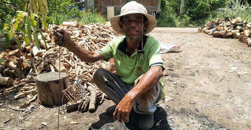 ซึ่งแต่ละวันจะขับรถสามล้อเครื่องคู่ใจออกไปตัดไม้กับลูกชายเป็นประจำทุกวัน จากนั้น จะนำไม้ที่ตัดมาเผาถ่านแบบชีวะมวลไร้ควัน ขายสร้างรายได้เข้าครัวเรือน โดยแต่ละวันจะเผาถ่านได้วันละ 1 กระสอบ ส่งขายในราคากระสอบละ 50 บาท ทำให้มีรายได้เฉลี่ยเดือนละ 2,000-3,000 บาทเท่านั้น เพราะว่ามีร่างกายที่ไม่แข็งแรงสมบูรณ์เหมือนกับคนอื่น จึงไม่สามารถทำงานได้อย่างเต็มที่