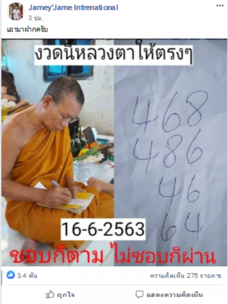 หนุ่มโพสต์ พระเขียนเลขให้ เลขนี้นะโยม