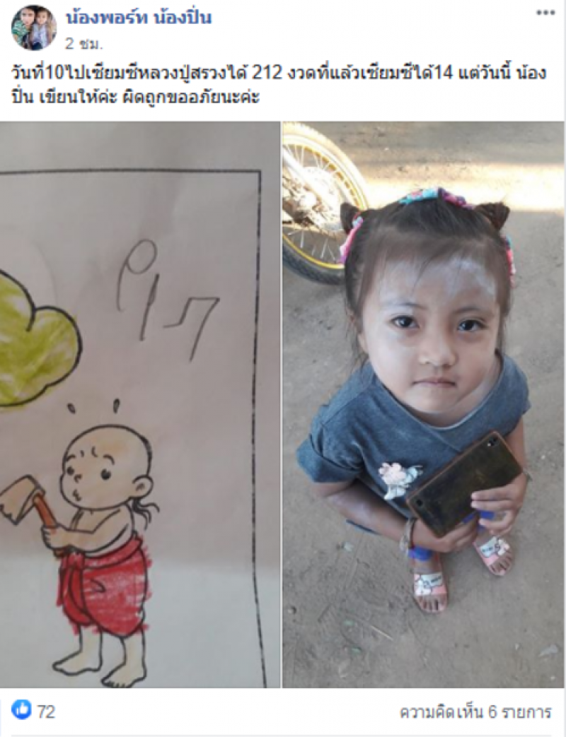 แม่โพสต์ น้องปิ่นบุตรสาวเขียนเลขให้