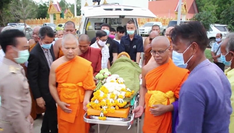 วันนี้ 13มิ.ย.63 เวลา 10.45 น. ที่วัดป่าพรหมนิมิตบ้านหนองเตา ต.หนองไฮ อ.อุทุมพรพิสัย จ.ศรีสะเกษ บรรดาลูกศิษย์หลวงปู่ทั้งพระสงฆ์และฆราวาส ได้พากันมารอสรีระสังขารหลวงปู่เคลื่อนจากโรงพยาบาลศรีสะเกษ เพื่อมาประกอบพิธีที่วัดป่าพรหมนิมิต ท่ามกลางความโศกเศร้า อาลัย