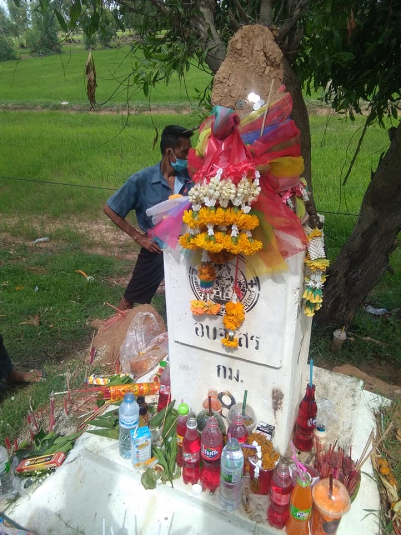 ชาวบ้านแห่มุง จอมปลวกทำรังบนหลักกิโล เลขสวยชัดแจ๋ว