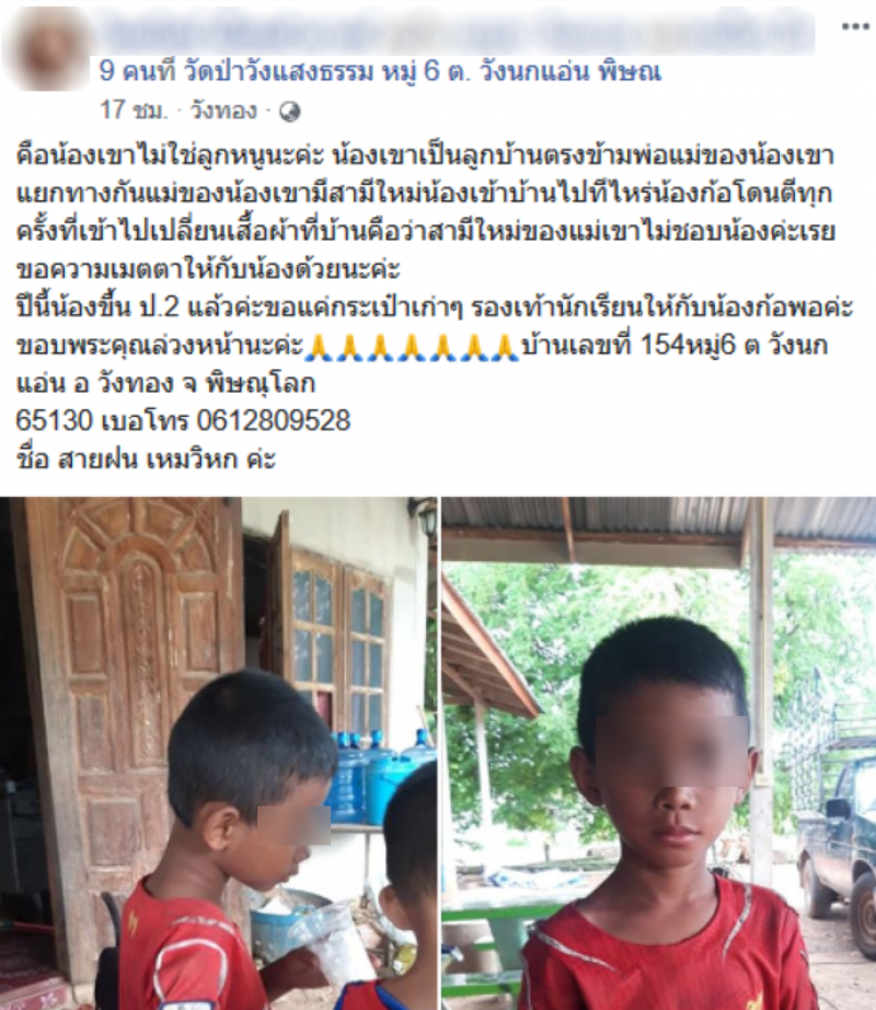 เพื่อนบ้านทนไม่ไหว โพสต์ขอชุดนักเรียน ให้หนุ่มน้อย ถูกแฟนใหม่แม่ตีไม่ให้เข้าบ้าน