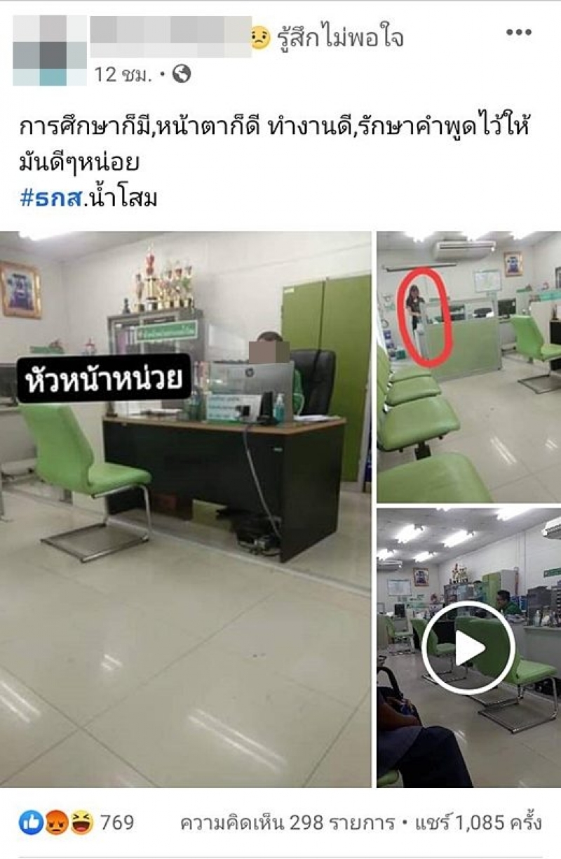 ล่าสุดมีรายงานข่าวว่า ผู้บริหาร ธ.ก.ส.ได้สั่งการให้ผู้จัดการสาขา อ.น้ำโสม จ.อุดรธานี ไปขอโทษลูกค้ากับเหตุการณ์ที่เกิดขึ้น ซึ่งเป็นความผิดของพนักงานที่ทำกริยาไม่เหมาะสม พูดจาไม่สุภาพ นอกจากนี้เบื้องต้นยังได้สั่งทำทัณฑ์บนพนักงานคนดังกล่าวเอาไว้แล้ว