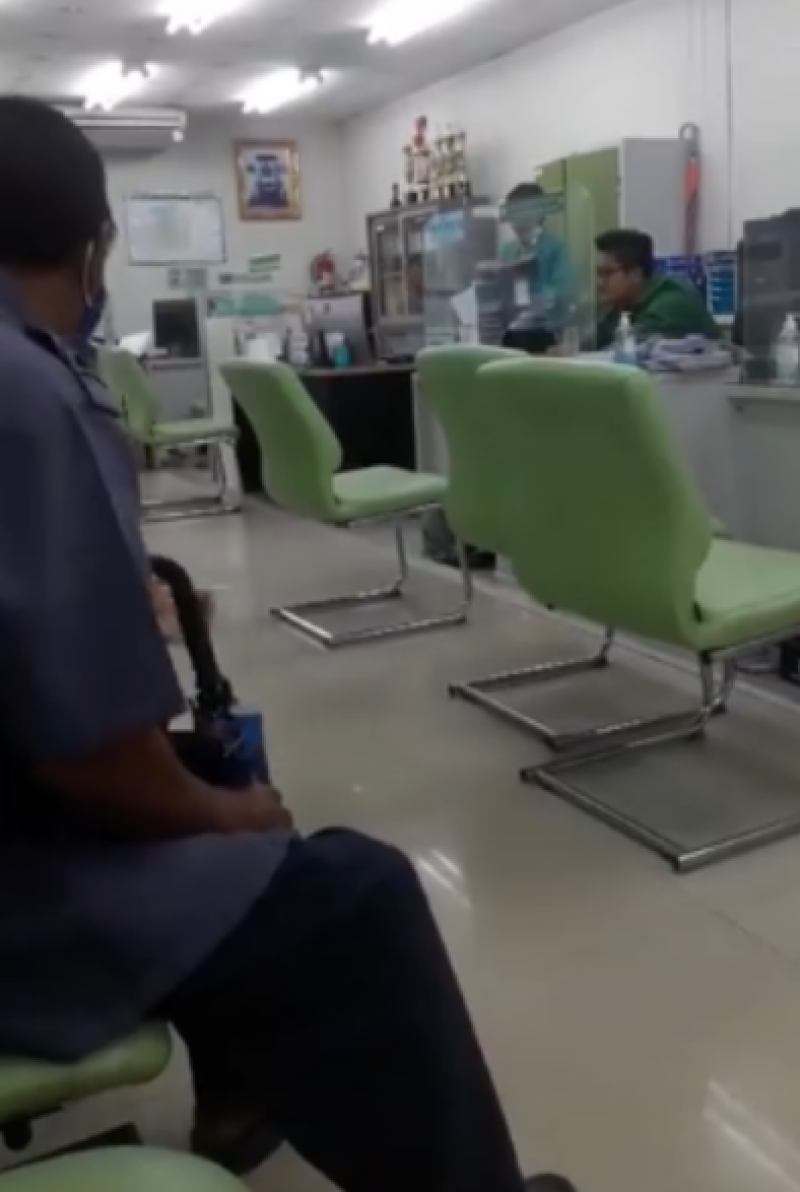 เจ้าหน้าที่: หัวหน้าต้นยังไม่เข้ามา เพราะเขาออกพื้นที่ และวันนี้เขาไม่ได้อยู่ที่นี่ เขาไม่ได้อยู่หน่วยประจำ เขาจะเข้ามากี่โมงพวกหนูไม่ทราบ