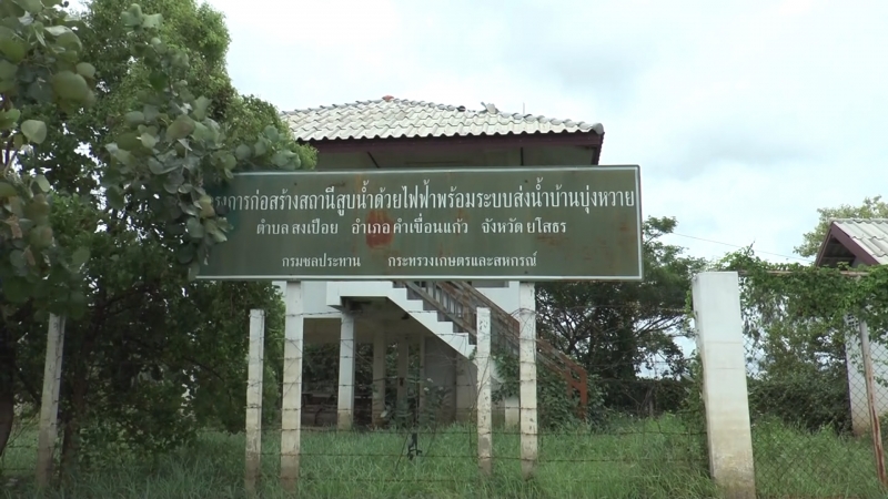 ที่สถานีสูบน้ำด้วยไฟฟ้าพร้อมระบบส่งน้ำบ้านบุ่งหวาย ตำบลสงเปือย อำเภอคำเขื่อนแก้ว จังหวัดยโสธร มูลค่า 20 ล้านบาท ขณะนี้ถูกปล่อยให้ทิ้งร้าง แพสูบน้ำเกยตื้นไม่สามารถที่จะสูบน้ำได้และไม่มีหน่วยงานที่รับผิดชอบเข้าไปดูแล จนกระทั่งล่าสุดมีคนแอบเข้าไปลักตัดเอาสายไฟฟ้าและหม้อแปลงไฟฟ้าขนาดใหญ่ภายในสถานีสูบน้ำด้วยไฟฟ้าแห่งนี้หายไป แต่ก็ยังไม่มีหน่วยงานใดเข้าไปดูแลหรือติดตามเหตุการณ์ที่เกิดขึ้นแต่อย่างใด