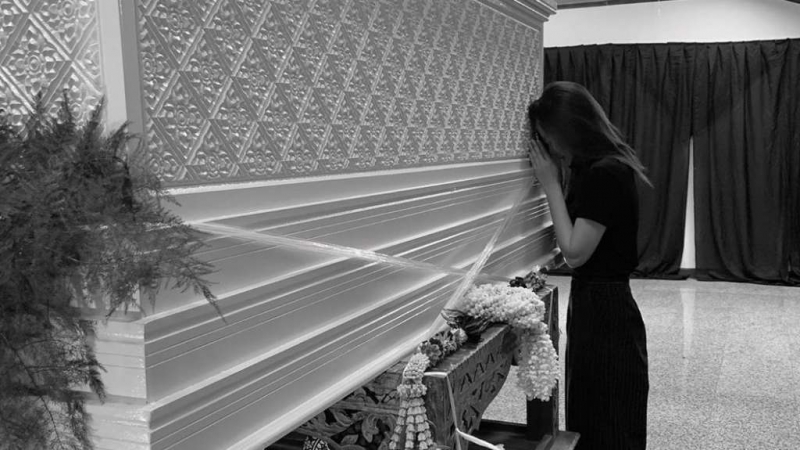 ใบเฟิร์น กลั้นน้ำตาไม่ไหว ยืนร้องไห้ข้างโลง ตั้ว ศรัณยู ไม่ห่าง