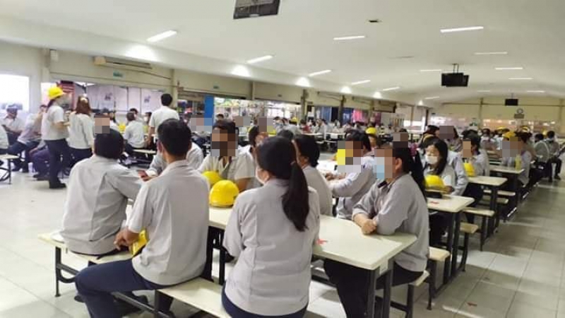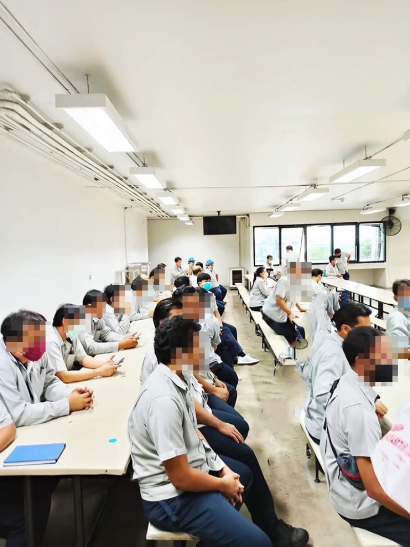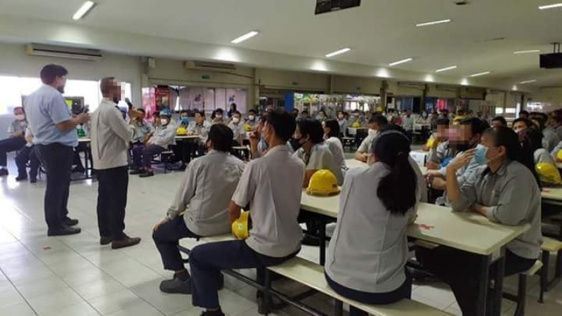ซึ่งตามรายงานแจ้งว่า กลุ่มพนักงานโรงงาน ดังกล่าวคือพนังงานโรงงานผลิตชิ้นส่วนยานยนต์แห่งหนึ่ง ภายในนิคมอุสาหกรรมแหลมฉบัง อ.ศรีราชา จ.ชลบุรี กำลังนั่งประชุมรับฟังแนวทางการลดจำนวนพนักงาน ทั้งสมัครใจลาออกและเชิญให้ออก