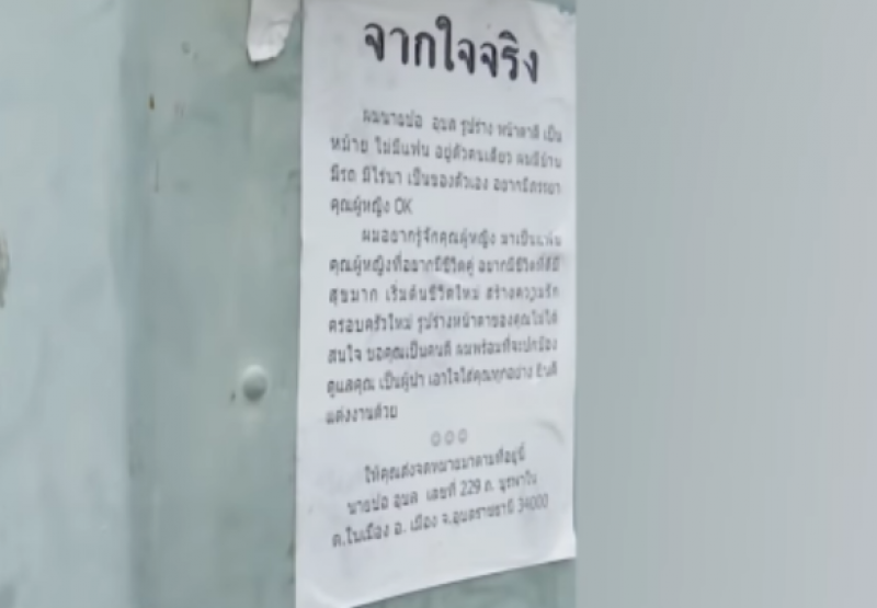 จากกรณีที่ในโลกโซเชียล ได้มีการลงเรื่องราวที่สร้างความฮือฮาเป็นอย่างมาก หลังมีคนเห็นประกาศใบปลิวรับสมัครคู่ชีวิตติดประกาศไปทั่วเมือง โดยในใบแจ้งว่า ชื่อนายปอ รูปร่าง หน้าตาดี มีบ้าน รถ ไร่นา แต่เป็นหม้าย อยากรับสมัครคู่ชีวิต รูปร่างหน้าตาไม่สนขอแค่เป็นคนดีก็พอ พร้อมแนบที่อยู่ให้ส่งจดหมายไป