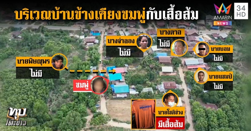 อย่างไรก็ตาม หากทุกคนยืนยันว่าไม่มีใครเดินผ่านมาเลยในช่วงที่น้องชมพู่หายตัวไป อาจะเป็นไปได้หรือไม่ที่คนร้ายจะใช้เส้นทางเดินมาจากทางบ้านนายบอม ทั้งหมดนี้เป็นปริศนาใหม่ และคำถาม คือ ใครใส่เสื้อสีส้ม