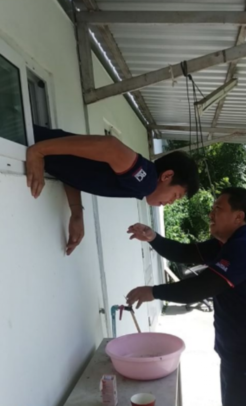 หนุ่มเข้าห้องน้ำ แหงนมองที่ประตู รีบกระโดดออกช่องลม หนีไม่คิดชีวิต