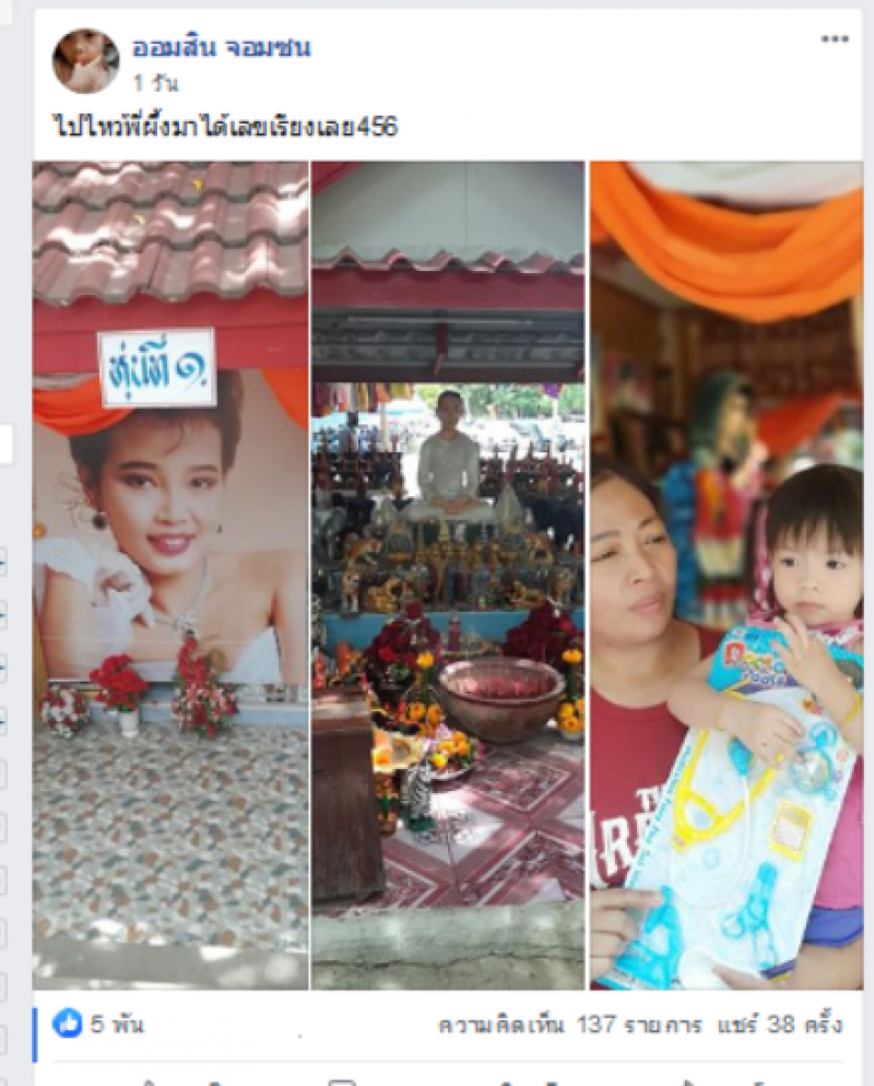สาวโพสต์พาบุตรไปไหว้ แม่ผึ้งพุ่มพวง ได้เลขเรียงมาเลย