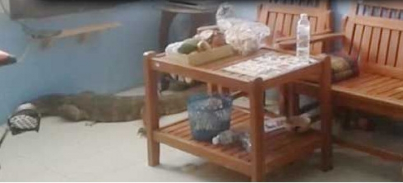 นางรฐา ตะเพียนทอง เจ้าหน้าที่กู้ภัยจังหวัดอ่างทอง กล่าวว่า ได้รับแจ้งขอความช่วยเหลือในการจับตัวเงินตัวทองขนาดใหญ่ที่วิ่งเข้าไปซุกตัวอยู่ภายในบ้าน ซึ่งผู้แจ้งบอกว่าตอนแรกตกใจ คิดว่าเป็นจระเข้หลุดมาแล้ววิ่งเข้าบ้าน เพราะลำตัวมีขนาดใหญ่มาก เนื่องจากไม่เคยเห็นตัวเงินตัวทองขนาดใหญ่แบบนี้มาก่อน ซึ่งมีลำตัวใหญ่มาก และยาวกว่า 2 เมตร แถมยังส่งเสียงขู่ฟ่อๆออกมาเป็นระยะ และนอนเฝ้าทีวีภายในบ้านไม่ยอมออกไปไหน