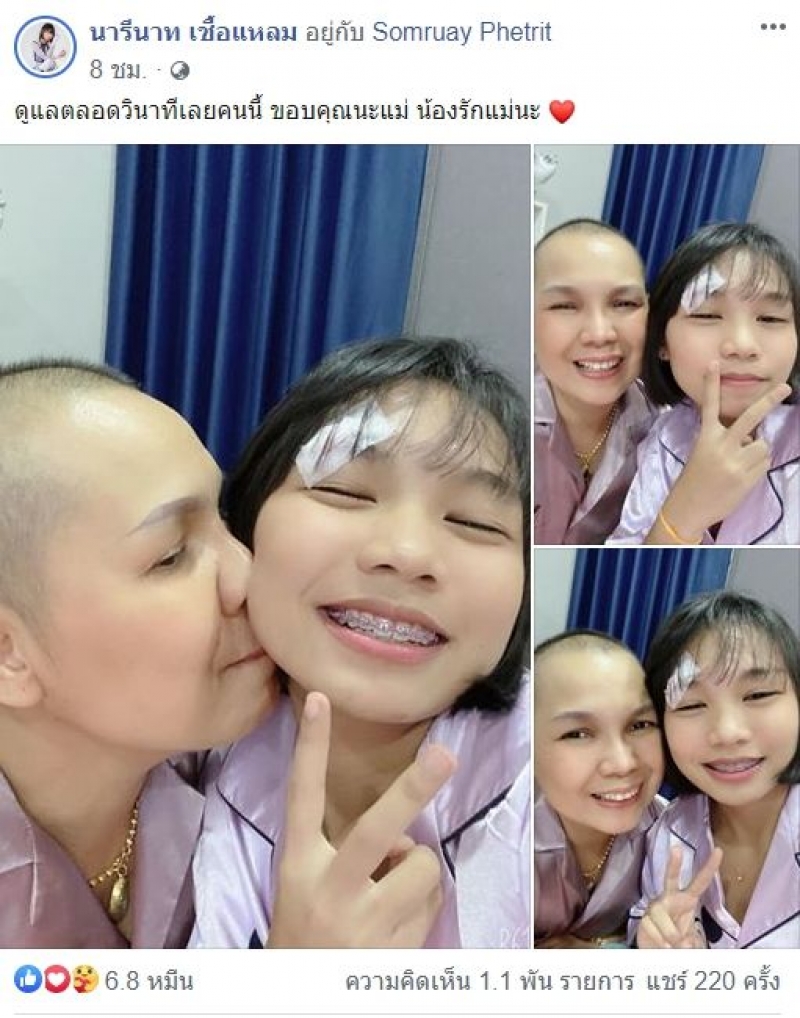 จากนั้น สาวลิลลี่ เลิกคุยทั้งอำเภอ ก็โพสต์แล้วครั้งแรก หลังประสบอุบัติเหตุ เป็นลมล้มหัวฟาดพื้น จนคิ้วแตกต้องเย็บถึง 3 เข็ม โดย สาวลิลลี่ ได้โพสต์รูปภาพคู่กับ คุณเเม่ โดยได้โพสต์ระบุข้อความว่า ดูแลตลอดวินาทีเลยคนนี้ ขอบคุณนะแม่ น้องรักแม่นะ