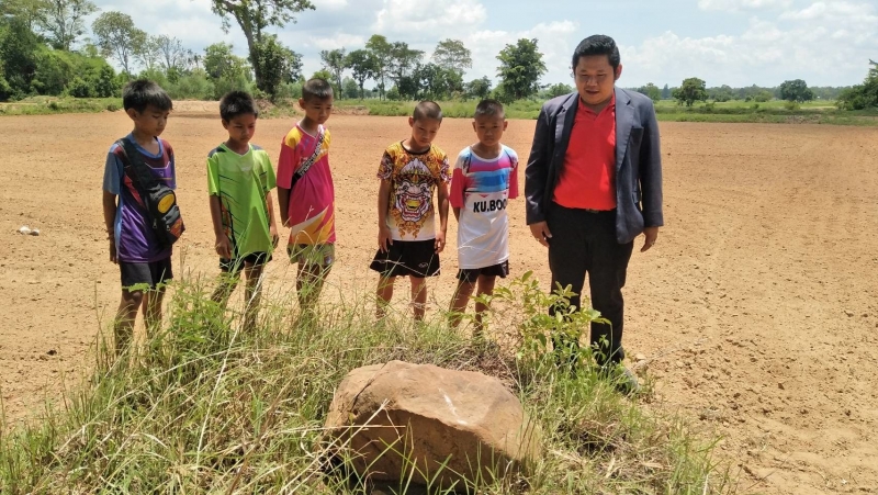 ชาวบ้านฮือฮา พบหลักเมืองโบราณ กลางทุ่ง