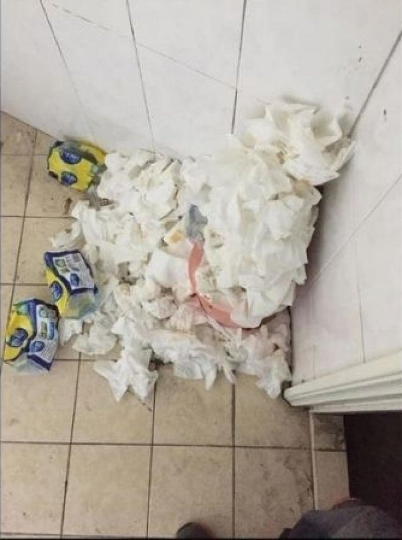เมื่อแฟนสาวเปิดประตูบ้านให้เขาเข้าไป ในตอนแรกเขาก็ไม่ได้คิดอะไรมาก แต่พอเดินไปถึงหน้าประตูห้องน้ำก็ถึงกับตกใจมาก ภายในห้องน้ำเต็มไปด้วยเศษกระดาษทิชชู่มากมาย กองเต็มถังขยะจนล้นออกมามากมายเต็มพื้น