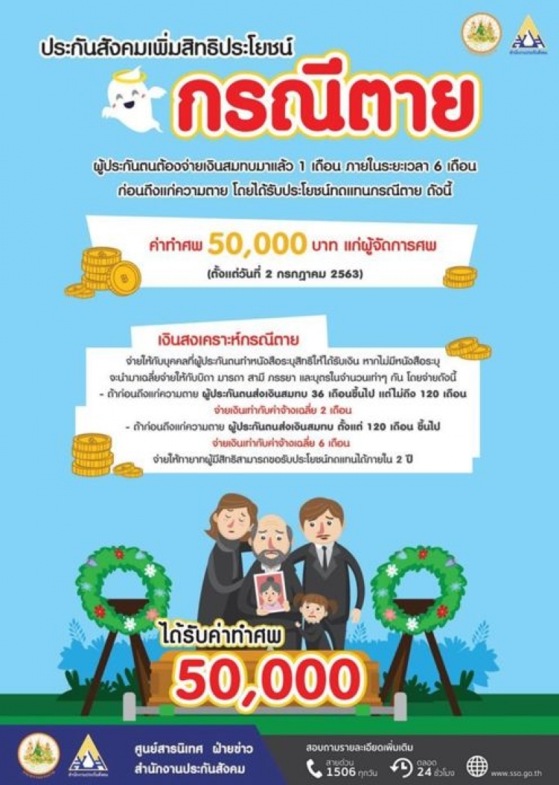 มีผลบังคับใช้แล้ว ประกันสังคมจ่ายเพิ่มค่าทำศพ 50,000