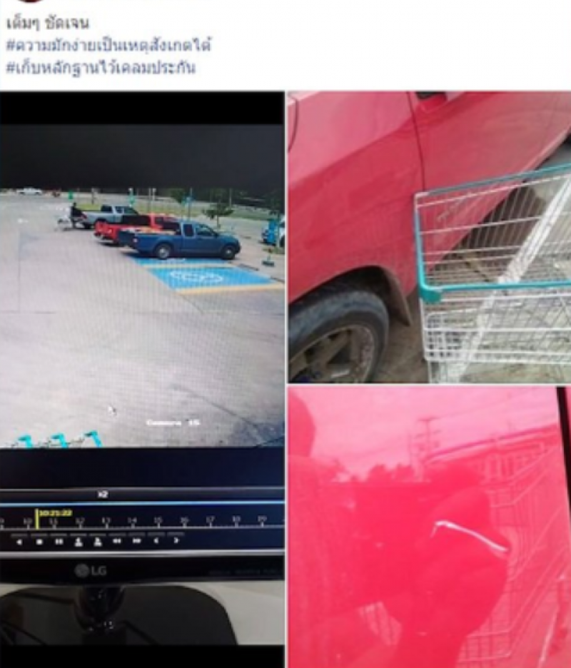 จากกรณีที่มีการโพสต์คลิปวีดิโอ ในเพจเฟซบุ๊กกลุ่มประจวบคีรีขันธ์ และอีกหลายเพจ ปรากฏเป็นภาพจากกล้องวงจรปิด ขณะรถกระบะสีแดง ตอนครึ่ง ทะเบียน บย 2961 ประจวบคีรีขันธ์ ของผู้เสียหาย จอดในลานจอดรถห้างขายอาหารแห่งหนึ่ง ใน อ.บางสะพาน ขณะที่มีหนุ่มจูงรถเข็นนำของที่ซื้อไว้จำนวนมาก มาใส่ท้าย เมื่อนำของขึ้นรถหมดแล้วได้ผลักรถเข็น ส่งผลให้มีแรงเฉื่อยเคลื่อนตัวรถเข็นไปกระแทกยังรถกระบะสีแดง ประตูเป็นรอยยาว ประมาณ 10 เซนติเมตร