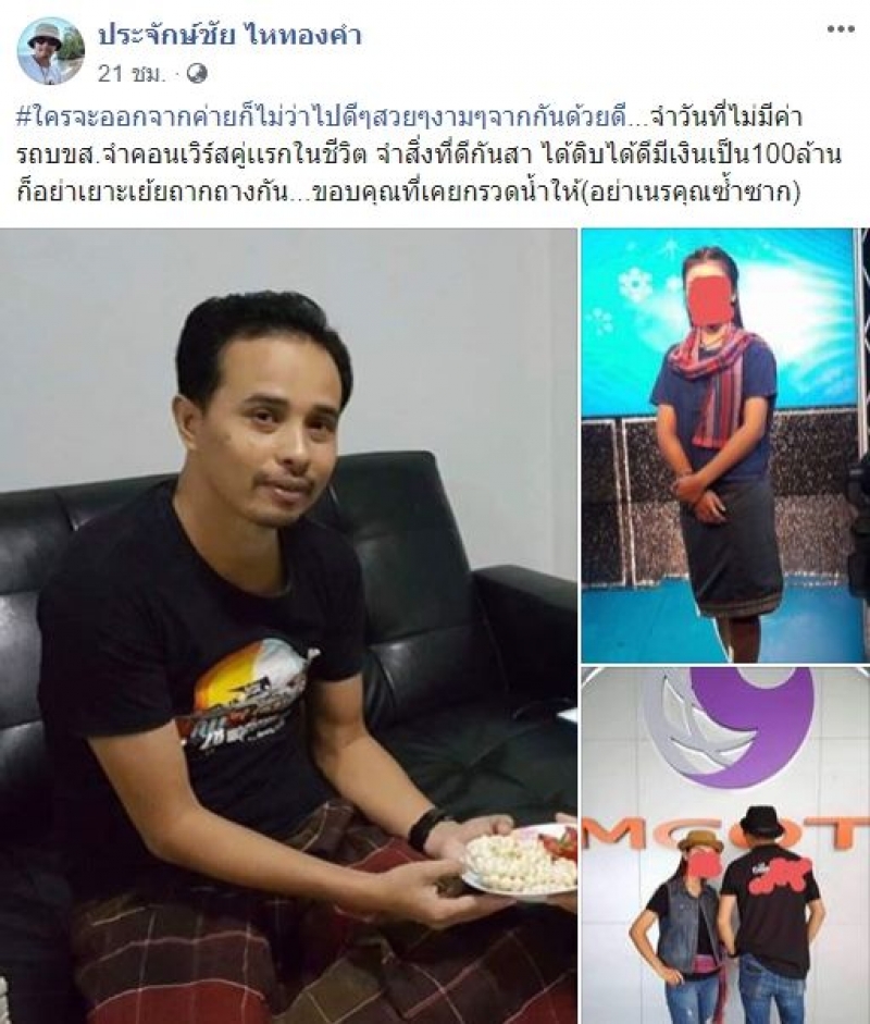 นอกจากนี้ เจ้าของค่ายไหทองคำยังโพสต์ภาพนักร้องดังในอดีตพร้อมระบุข้อความอีกว่า ใครจะออกจากค่ายก็ไม่ว่าไปดีๆสวยๆงามๆจากกันด้วยดีจำวันที่ไม่มีค่ารถบขส.จำคอนเวิร์สคู่เเรกในชีวิต จำสิ่งที่ดีกันสา ได้ดิบได้ดีมีเงินเป็น100ล้านก็อย่าเยาะเย้ยถากถางกันขอบคุณที่เคยกรวดน้ำให้ อย่าเนรคุณซ้ำซาก