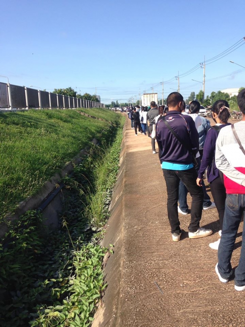 เรียกได้ว่าเป็นอีกหนึ่งเรื่องราวที่สร้างความฮือฮาอย่างมาก ในกลุ่มหางาน จังหวัดปราจีนบุรี ได้มีผู้ใช้เฟซบุ๊กโพสต์ภาพประชาชนจำนวนมาก แห่กันไปสมัครงานที่บริษัท cannon เมื่อช่วงเช้าที่ผ่านมา โดยในภาพจะเห็นได้ผู้คนต่างยืนต่อแถวกันยาวเป็นร้อยเมตร