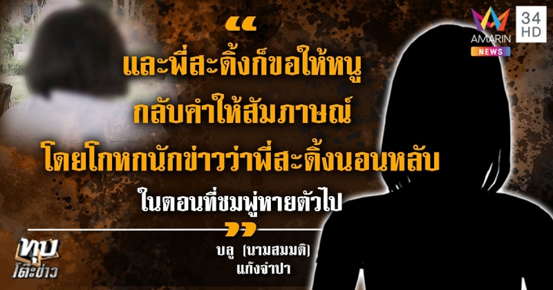 ได้มาพูดคุยกับ ด.ญ.บลู (นามสมมติ) หนึ่งในแก๊งจำปา ที่เล่นบริเวณต้นจำปาในวันที่น้องชมพู่หายตัวไป เปิดเผยข้อมูลสำคัญกับทีมข่าวอมรินทร์ทีวีว่า วันที่น้องชมพู่หายตัวไป น้องสะดิ้ง พี่สาวของน้องชมพู่ ไม่ได้นอนหลับแต่อย่างใด เท่าที่ตนเห็นสะดิ้ง เขาจะนอนคว่ำหน้า เล่นโทรศัพท์อยู่ที่แคร่หน้าบ้านตนเอง