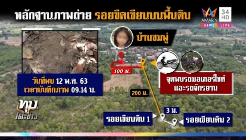 โดยได้มีการเปิดเผยว่า ชาวบ้านนำภาพปริศนามามอบให้ เชื่อเป็นเบาะแสใหม่ รอยเขี่ยดิน ที่เจอบริเวณร่องน้ำใกล้ตีนเขา วันที่ค้นหาชมพู่ ตั้งข้อสังเกตเป็นไปได้หรือไม่ ที่คนร้ายเอาชมพู่ไปนั่งพักแถวนั้นแล้วเด็กเขี่ยดินเล่น
