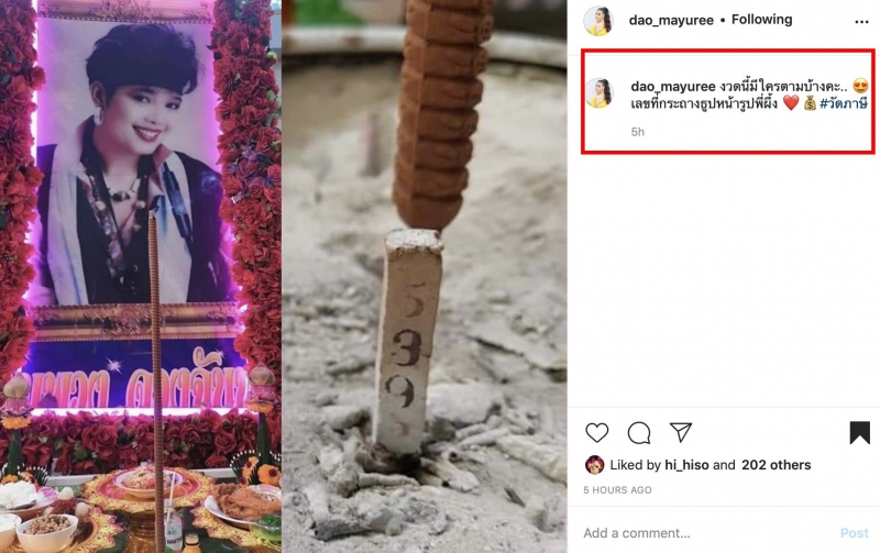 ล่าสุด นักร้องลูกทุ่งอย่าง ดาว มยุรี ได้โชว์จาก แม่ผึ้ง พุ่มพวง อีกแล้ว หลังได้เลขเด็ดจากกระถางธูปหน้ารูปของ แม่ผึ้ง พุ่มพวง อย่างเลข 53 พร้อมระบุว่า ใครตามบ้าง