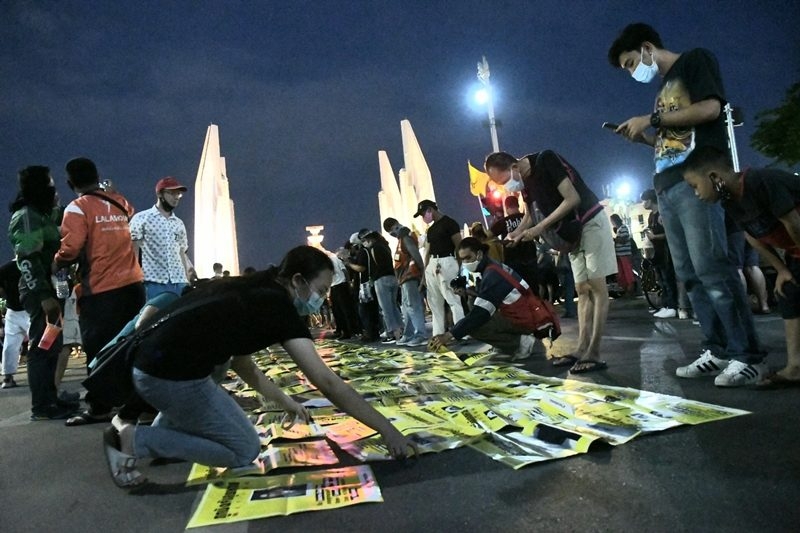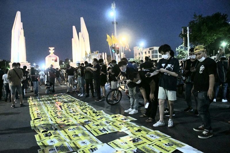 เยาวชนปลดแอก ปูภาพ เหยื่อถูกอุ้มสูญหาย หน้าอนุสาวรีย์ประชาธิปไตย