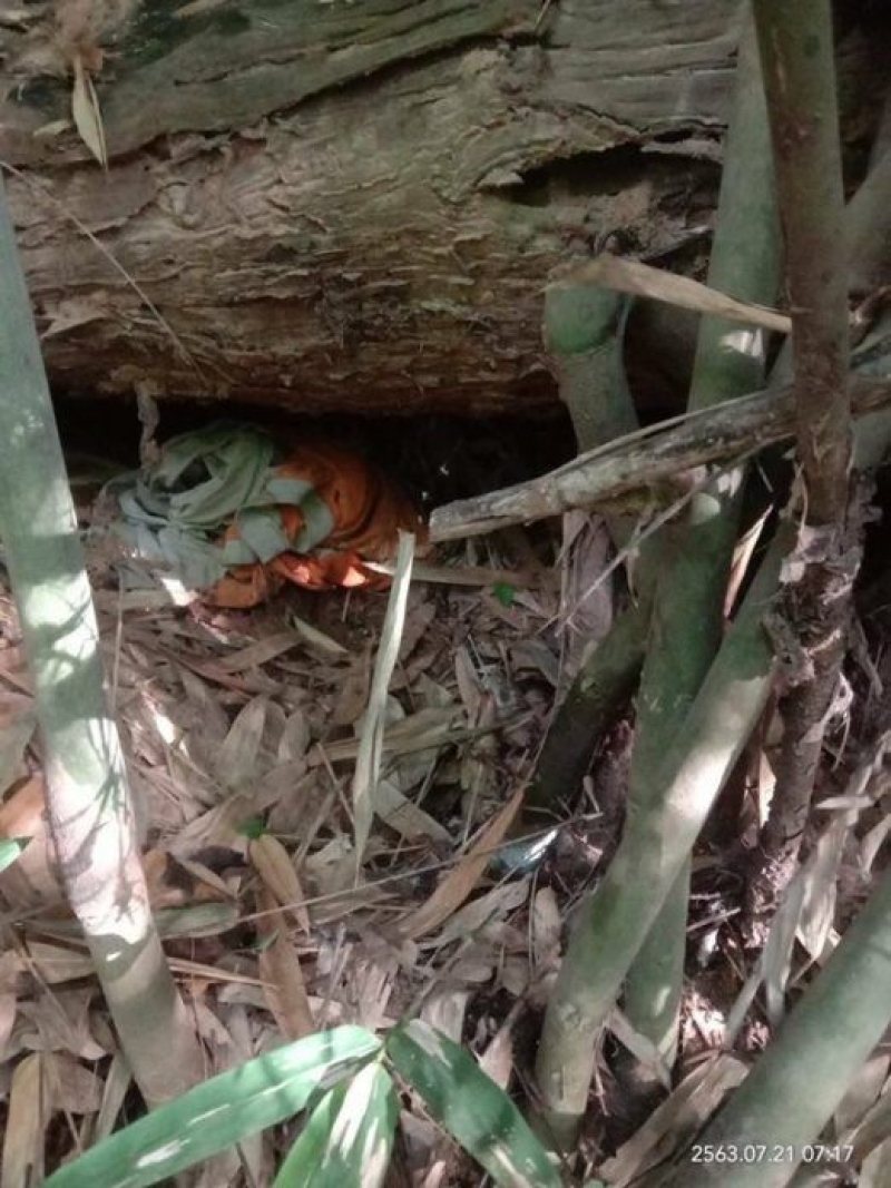 หลังจากนั้น มีชาวบ้านมาพบผ้าสีส้ม ลักษณะคล้ายเสื้อสีส้มแถบขาว บริเวณใต้กอไผ่ใกล้กับสวนยางชาวบ้านกกกอก โดยอยู่ในลักษณะซุกอยู่ใต้ขอนไม้ใกล้กับกอไผ่ นอกจากนี้ยังพบเศษผ้าคล้ายเสื้อสีขาวตกอยู่ใกล้กัน