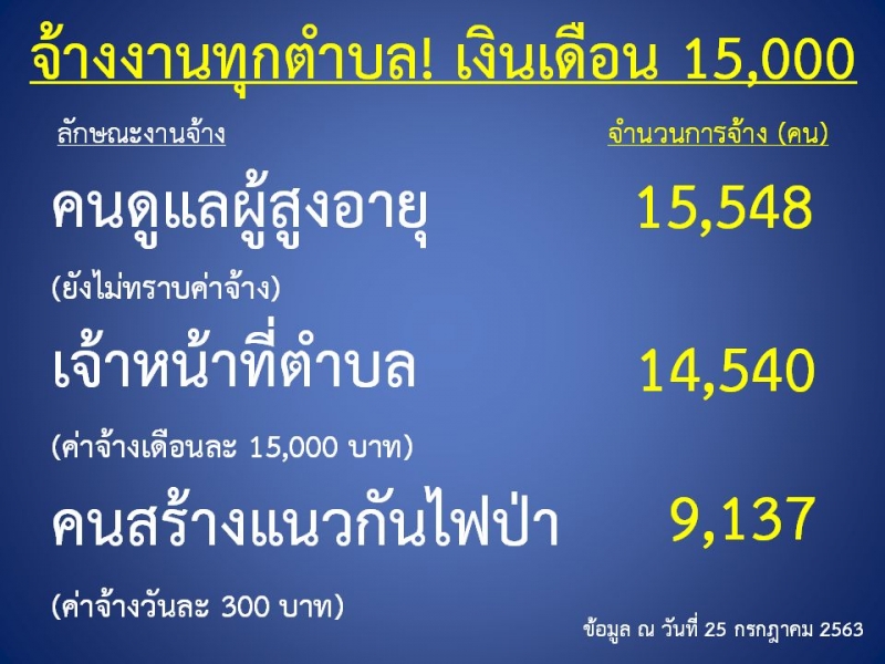 2.โครงการพัฒนาตำบลแบบบูรณาการทุกตำบล ตำบลละ 2 คน รวมจำนวน 14,540 คน อัตราค่าจ้างเดือนละ 15,000 บาท ระหว่างเดือน สิงหาคม 2563 กันยายน 2564