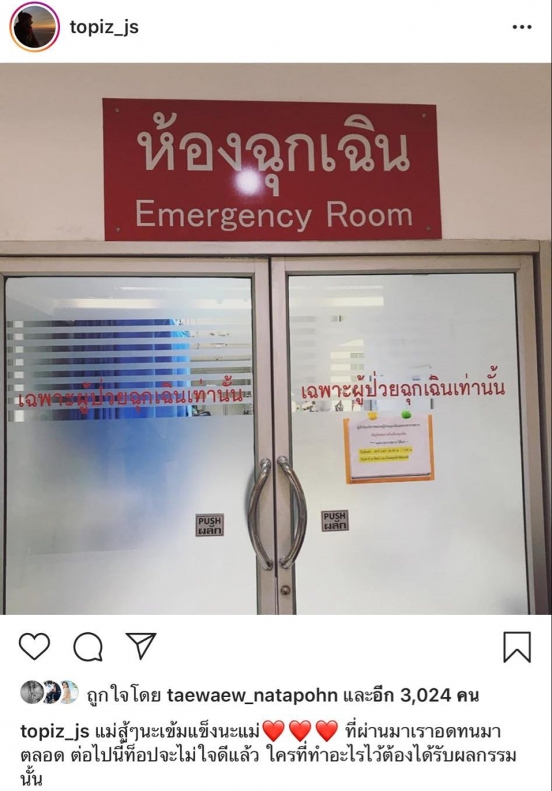 ท็อป จรณ โพสต์คุณแม่เข้าห้องฉุกเฉิน ลั่นต่อไปจะไม่ใจดีแล้ว ใครทำอะไรไว้ต้องได้รับผลกรรม
