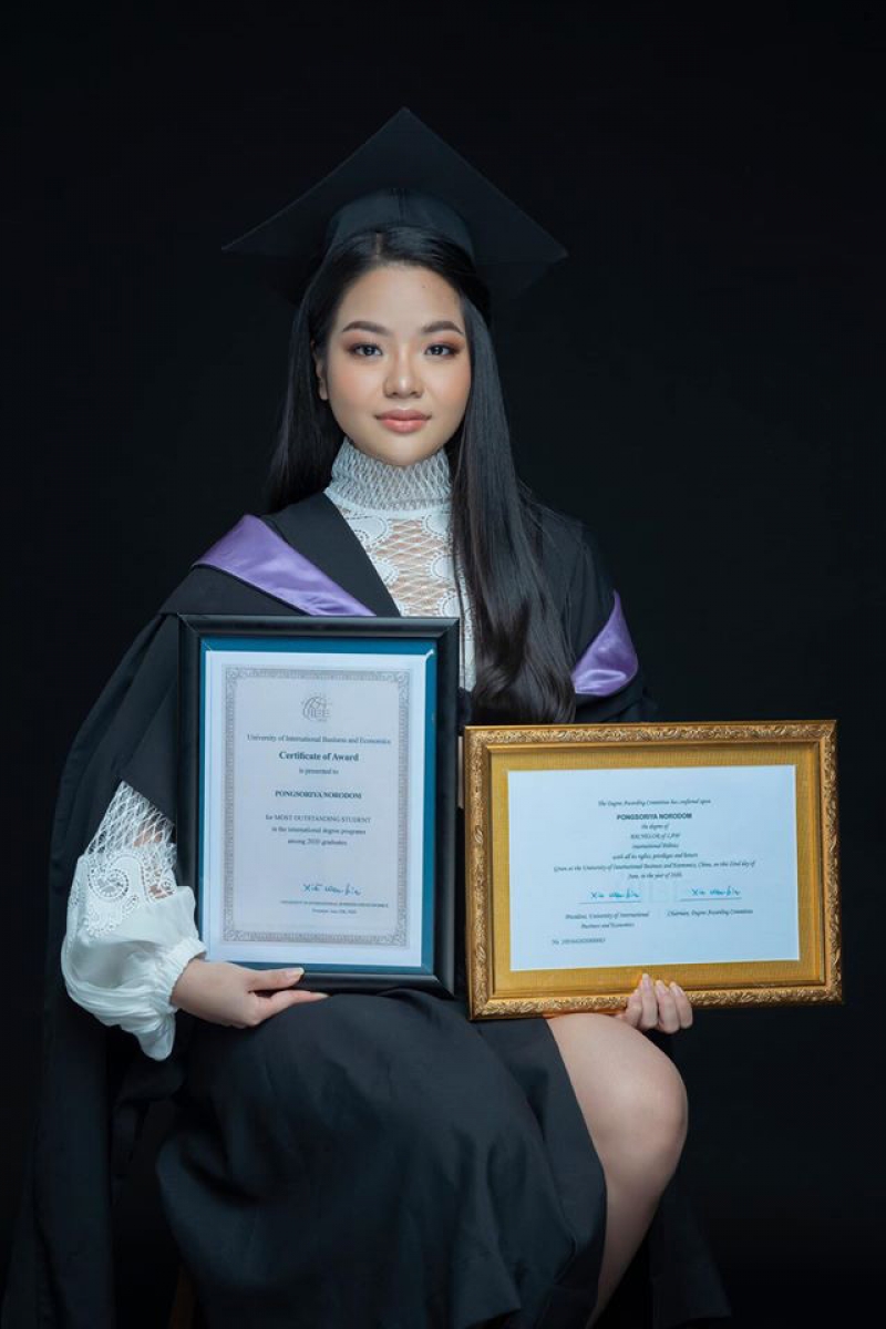 เมื่อวันที่ 4 กรกฎาคม 2563 สำนักพระราชวังกัมพูชา แถลงการณ์ว่า พระองค์เจ้านโรดม พงสุริยา (Princess Norodom Pongsoriya) พระภาติยะ (หลาน) ใน พระบาทสมเด็จพระบรมนาถ นโรดม สีหมุนี กษัตริย์กัมพูชาพระองค์ปัจจุบัน ทรงสำเร็จการศึกษาระดับปริญญาตรี ด้านรัฐศาสตร์ระหว่างประเทศ จากมหาวิทยาลัยการเศรษฐศาสตร์และธุรกิจระหว่างประเทศ หรือ UIBE (University of International Business and Economics) ณ กรุงปักกิ่ง สาธารณรัฐประชาชนจีน