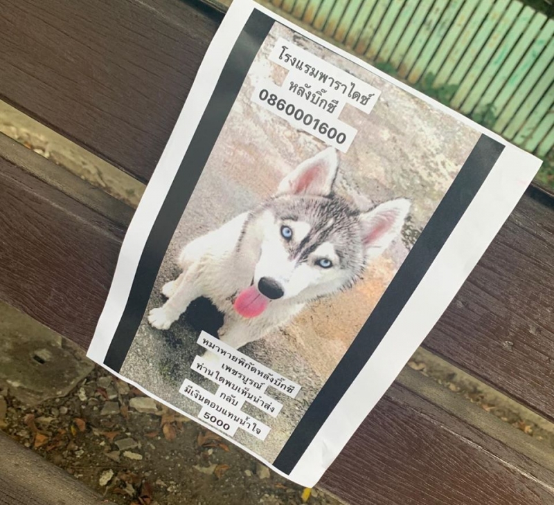จากกรณีที่ผู้ใช้เฟซบุ๊กชื่อ ชัชนี คงเมือง ได้มีการโพสต์ข้อความ ประกาศตามหาสุนัขของตน ที่หายไปโดยระบุว่า น้องหมาไซบีเรียนชื่อกล้วยเชื่อม พิกัดร้านไม้หน้าค่ายหลังบิ๊กซีเพชรบูรณ์ น้องวิ่งเล่นบริเวณร้านค้าแล้วหายไปราวๆ 1 ชั่วโมง (16:30) น้องมีปอกคอป้ายชื่อสแตนเลส เขียนว่า กล้วยเชื่อม (โรงแรมพาราไดซ์อินน์) มีเบอร์โทรกลับ 086-000-1600 หากท่านใดพบเจอน้อง รบกวนติดต่อกลับ 086-000-1600 (เจ้าของ) เป็นห่วงมากๆ หรือ พาส่งคืนที่ ร้านไม้หน้าค่าย/โรงแรมพาราไดซ์อินน์ ด้วยนะคะ ขอบพระคุณมากๆ ค่ะ เจ้าของมีสินน้ำใจให้ 5000 บาท