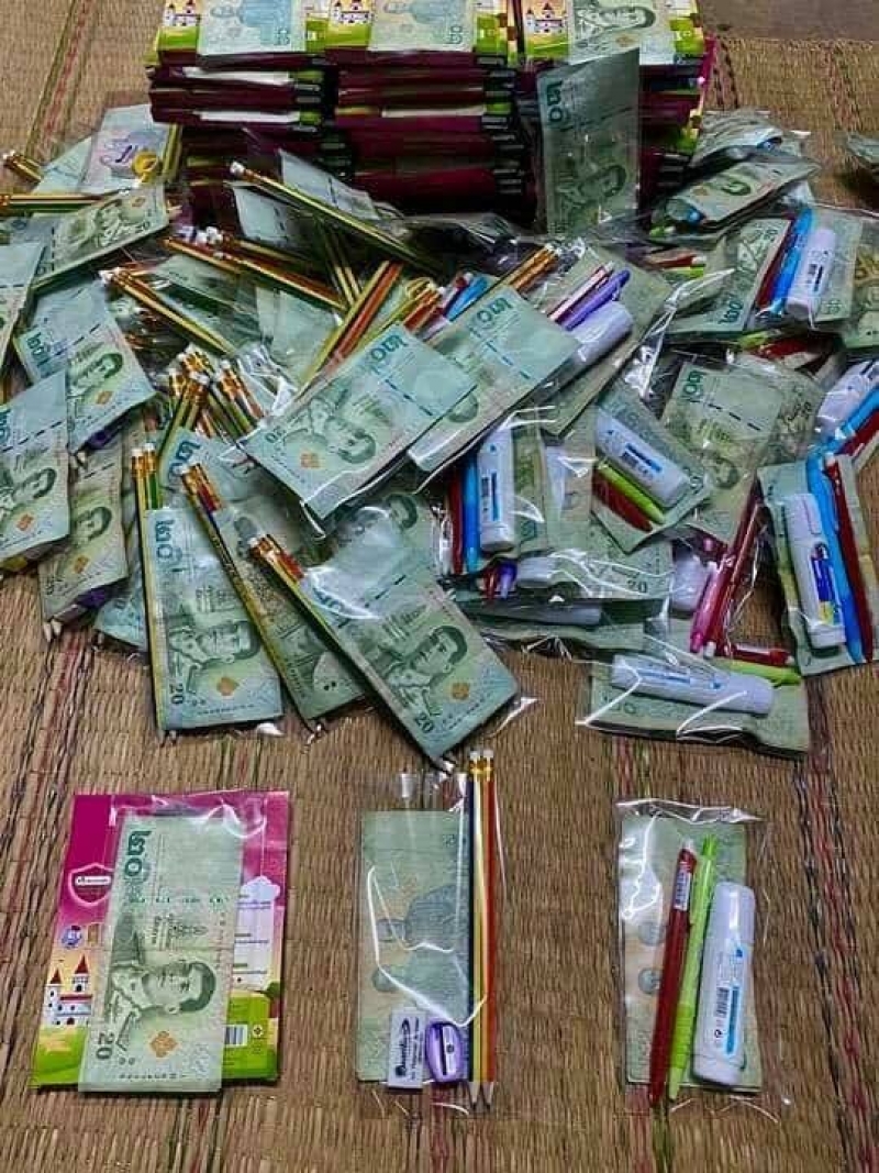 เรียกได้ว่าเป็นอีกหนึ่งเรื่องราวที่ได้รับเสียงชื่นชมเป็นอย่างมาก หลังจากที่ผู้ใช้เฟซบุ๊กชื่อ เหลา หมอเหลง ได้ลงภาพ แพ็คของไว้แจกน้องๆ อนุบาล โดยในถุงจะบรรจุสีระบาย พร้อมเงิน 40 บาททุกคน ป1-ป3 ดินสอกบเหลาดินยางลบพร้อมเงิน 40 บาททุกคน ป4-ป6 ประกาสีแดงน้ำเงินลิปควิดพร้อมเงิน 40 บาททุกคน