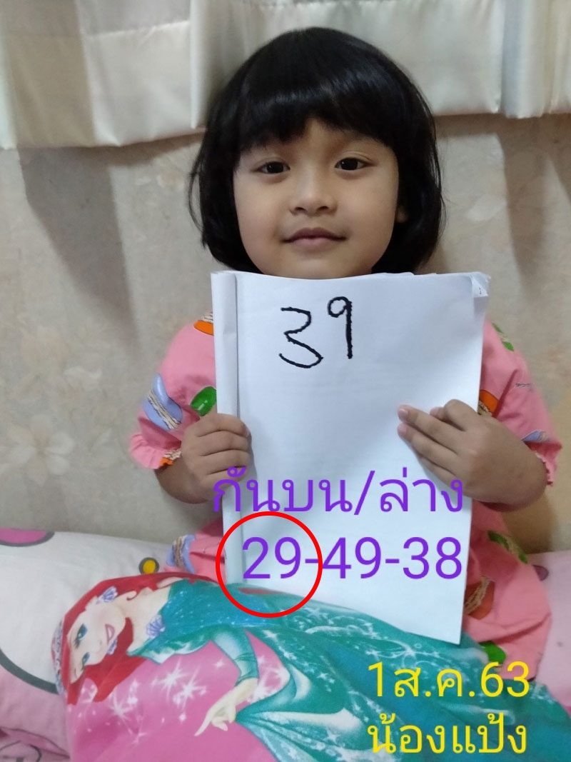 ล่าสุดเข้าแล้วจ้า หลังเฟสบุ๊คชื่อ Chalita Churnjityart ได้ออกมาโพสต์ภาพ บุตรสาวเขียนเลขให้ คือ 39 29 49 38 งานนี้ใครตามบ้างเข้าเลยจ้า ใครกลับเล่นบ้าง นั่นก็คือ เลข 92 นั่นเองใครสลับเลข 29 ยินดีด้วยนะคะ
