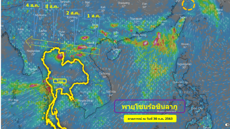 1 ส.ค.จะทำให้เกิดเริ่มมีฝนตกเพิ่มขึ้นที่นครพนม บึงกาฬ มุกดาหาร ยโสธร หนองคาย 2 ส.ค. จะทำให้ฝนตกหนักถึงหนักมากที่ นครพนม บึงกาฬ หนองคาย 3 ส.ค. ฝนตกหนักถึงหนักมากที่ น่าน แพร่ และภาคตะวันตกติดกับชายแดนพม่า ภาคตะวันออก