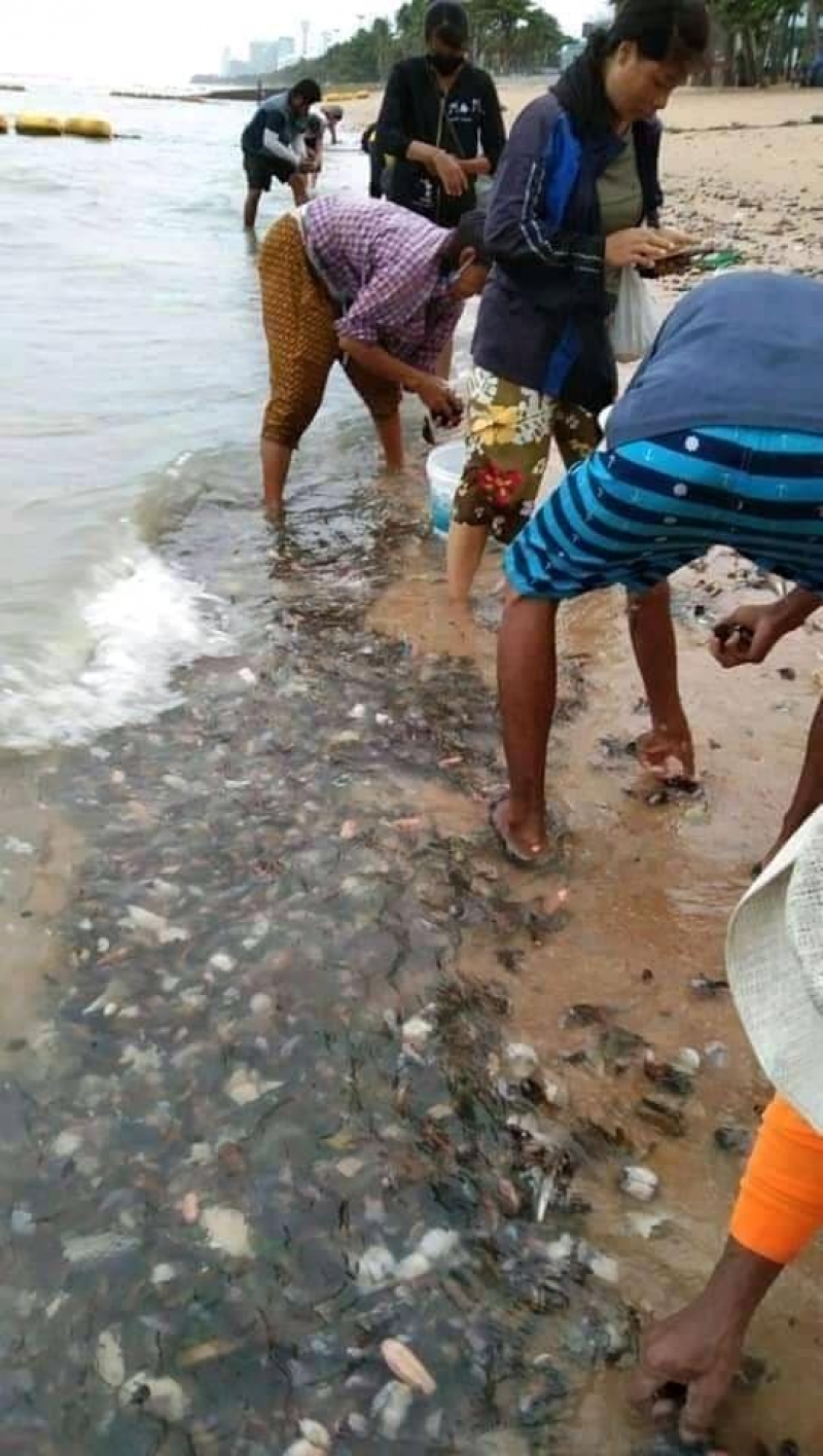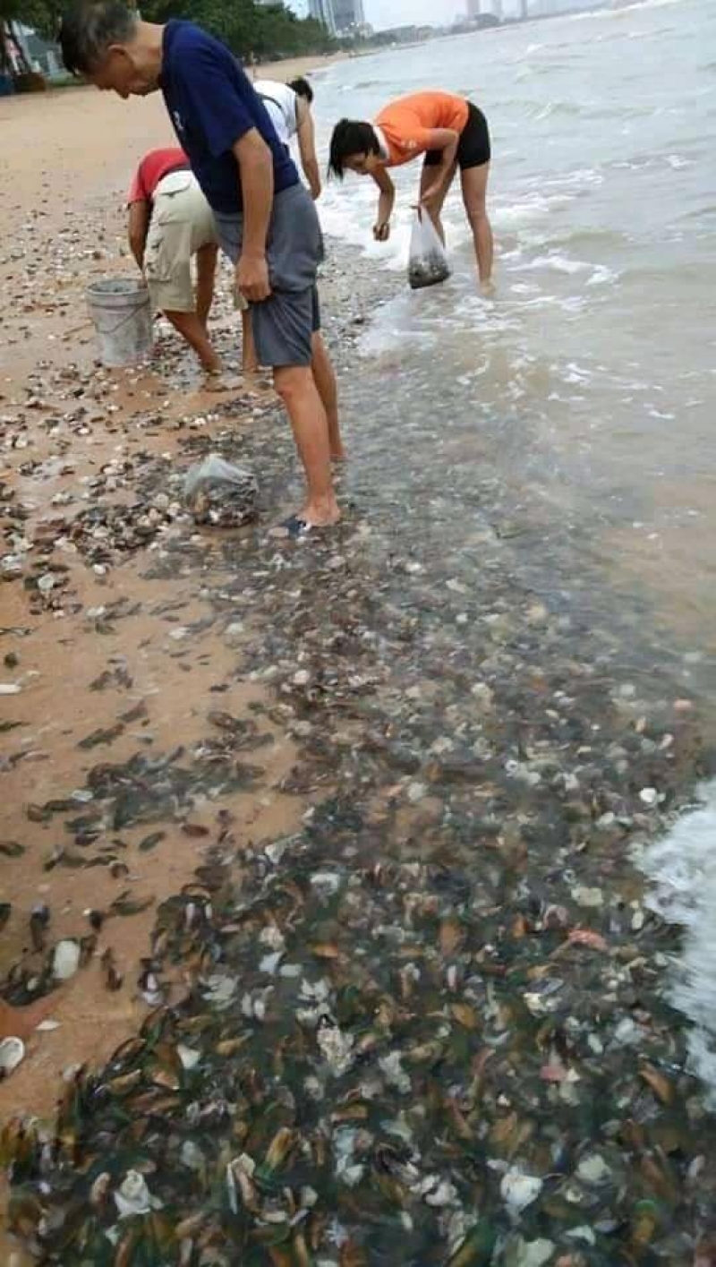 วันที่ 1 สิงหาคม เมื่อช่วงเช้าที่ผ่านมา มีรายงานว่า ชาวบ้านที่นาจอมเทียน พัทยา ได้แห่กันไปเก็บหอยแมลงภู่ เพื่อนำไปปรุงเป็นอาหารและขายสร้างรายได้เสริม หลังจากที่มีหอยแมลงภู่จำนวนมาก ขึ้นมาเกยที่หาด ท่ามกลางความฮือฮาของชาวบ้านที่ทราบข่าว ก็พากันแห่มาเก็บหอยกันเรื่อยๆ