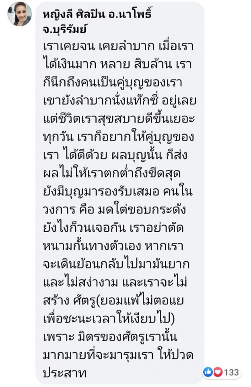แต่ชีวิตเราสุขสบาย เราก็อยากให้คู่บุญของเราได้ดีด้วย"
