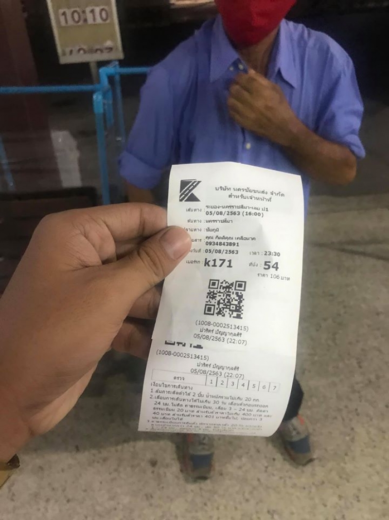 โดยผู้โพสต์ระบุว่า ระหว่างเลิกงานทางกลับบ้าน ขับรถมาเจอลุงกำลังเดินข้างถนนขาเข้าเมืองโคราชมืดๆ ก็เลยเลี้ยวมอไซค์กลับไปถาม ได้ความว่าลุง เดิน ใช่ครับอ่านไม่ผิด ลุงเดินมาจาก อำเภอคลองหลวง จังหวัดปทุมธานี เจอลุงที่ สี่เเยกปัก(โคราช) ลุงแกบอกเดินมา4วันจะเดินไปหาครอบครัวที่ หนองบัวเเดงชัยภูมิ ผลกระทบโควิดลุงบอกว่างงานมาแล้ว 3เดือน ลุงไม่มีอะไรติดตัวเลยมีเเค่กระเป๋าเป้1ใบกับหัวใจ1ดวง ที่จะเดินกลับบ้าน ผมเลยไปส่งลุง บขสโคราช ซื้อตั๋วรถให้ไปลง บขสชัยภูมิให้เงินติดตัวอีกเล็กน้อย เดินทางปลอดภัยลุง