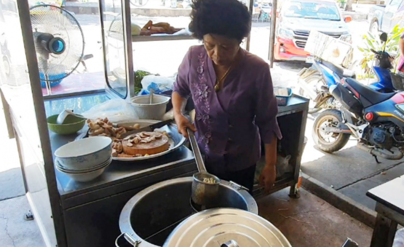 โดยที่ร้านก๋วยเตี๋ยวย่านบ้านโรงโป๊ะ อ.บางละมุง จ.ชลบุรีสม ของคุณยายจำรัส แท่งหิรัญ อายุ 76 ปี เล่าว่า ร้านดังกล่าวเปิดขายมากว่า 50 ปี โดยเป็นร้านเล็กที่มีคนมากินไม่ขาดสาย โดยก๋วยเตี๋ยวในร้านไม่ว่าจะเป็น ก๋วยเตี๋ยวเย็นตาโฟ เกี๋ยวปลา เกี๋ยวกุ้ง ซึ่งเป็นรสชาติโบราณไม่เหมือนใคร