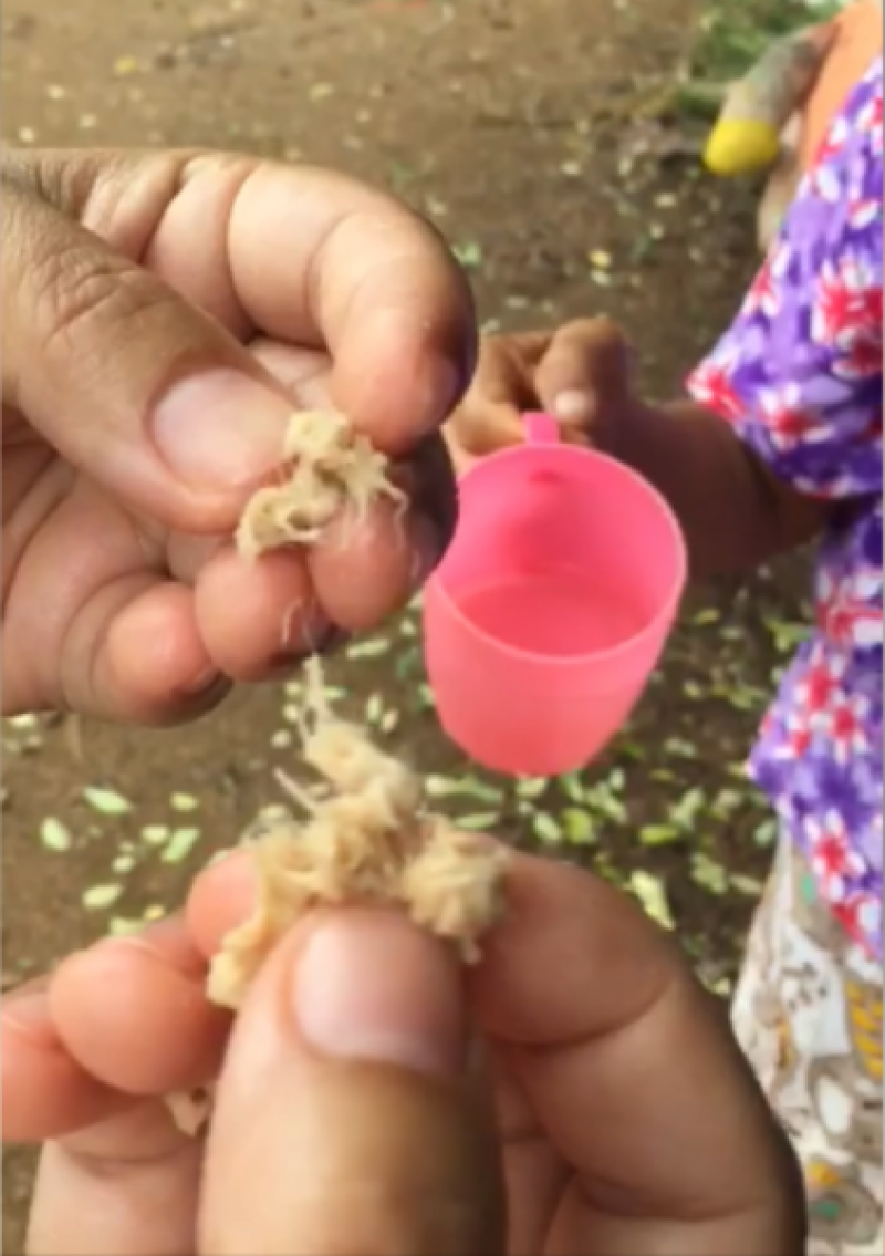 สาววัย 34 ปี ผู้โพสต์ ซึ่งเป็นชาวบ้านใน อ.หนองไผ่ จ.เพชรบูรณ์ เล่าว่า เหตุการณ์ดังกล่าวเกิดขึ้นในพื้นที่บ้านไร่เหนือ หมู่ 2 ต.บัววัฒนา อ.หนองไผ่ ซึ่งชาวบ้านละแวกนี้มักได้รับอาหารจากทางวัดเขาน้อย ที่เหลือจากการบิณฑบาตนำมาแจกญาติโยมอยู่เสมอ ตนได้รับแจกขนมจีนน้ำยากะทิจึงได้นำมาเทใส่ถ้วยเตรียมรับประทาน แต่พอใช้ช้อนตักดูส่วนผสมในน้ำยาก็พบสิ่งผิดปกติ เศษปลาในน้ำยามีลักษณะแปลก ๆ จับตัวเป็นก้อนเหนียวเคี้ยวยังไงก็ไม่แหลก จึงตักออกมาใช้น้ำล้างดูก็พบว่าสิ่งที่เข้าใจว่าปลากลับมีลักษณะเป็นเส้น ๆ คล้ายสำลี จึงเกิดความสงสัยและทำการถ่ายคลิปวีดีโอโพสต์ลงเฟซบุ๊ก