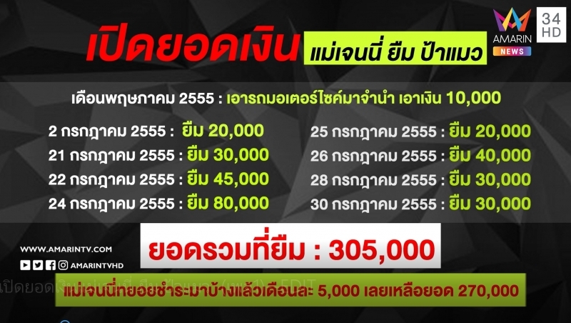 ไทม์ไลน์ แม่เจนนี่ ยืมเงิน ป้าแมว ที่ยังค้างอีกหลายแสน